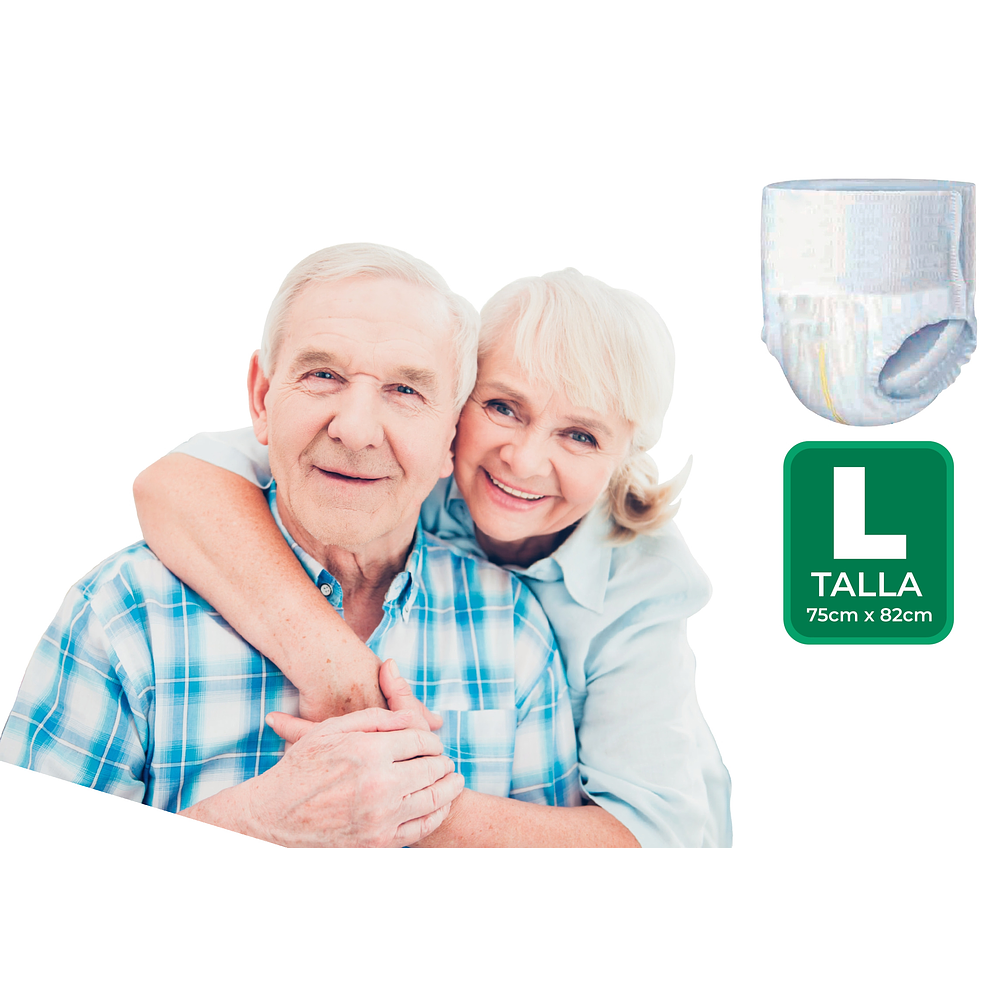 Pañales para Adulto tipo Calzon. Pull up.Cintura: 75- 82 CMIncontinencia fuerte 1000ml de absorciónDesechableUnisexTalla LHipoalergénico. La mejor CalidadSomos tienda establecida e importamos directamente con nuestra marca propia y patentada